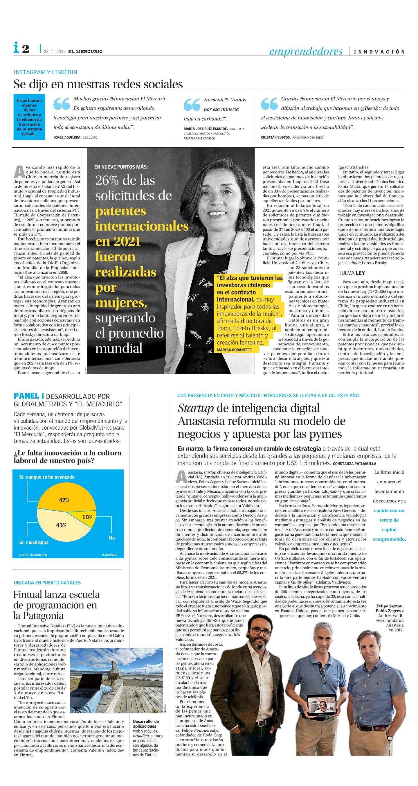 Diario El Mercurio destaca en su suplemento de Innovación que el 26% de las solicitudes de patentes internacionales fueron realizadas por mujeres: La UC lidera con 23 solicitudes en ámbitos como la biotecnología, mecánica y química.